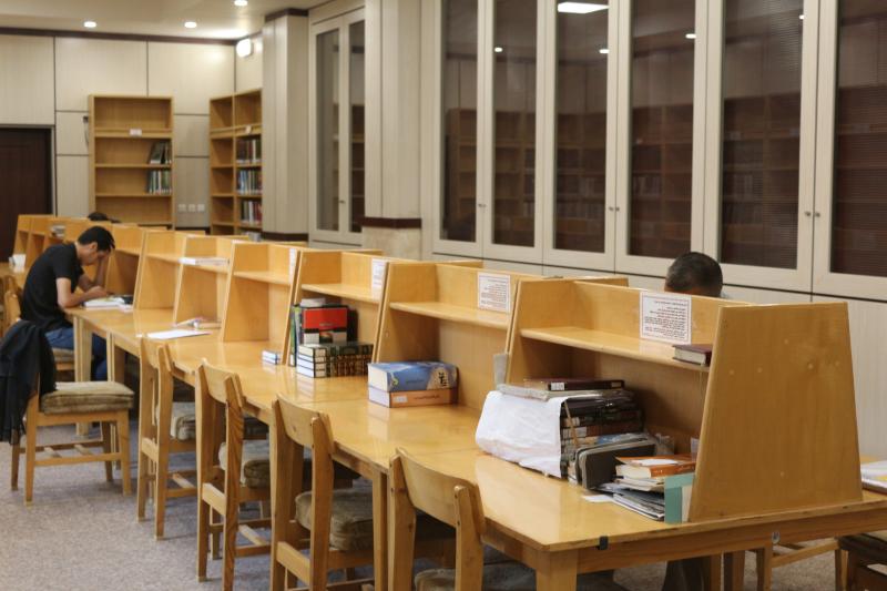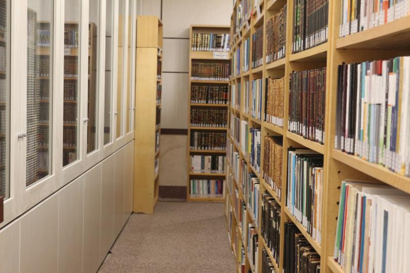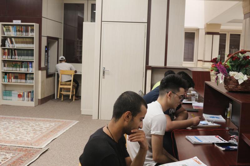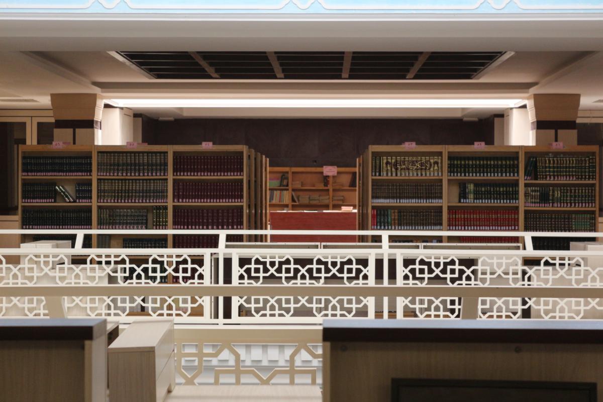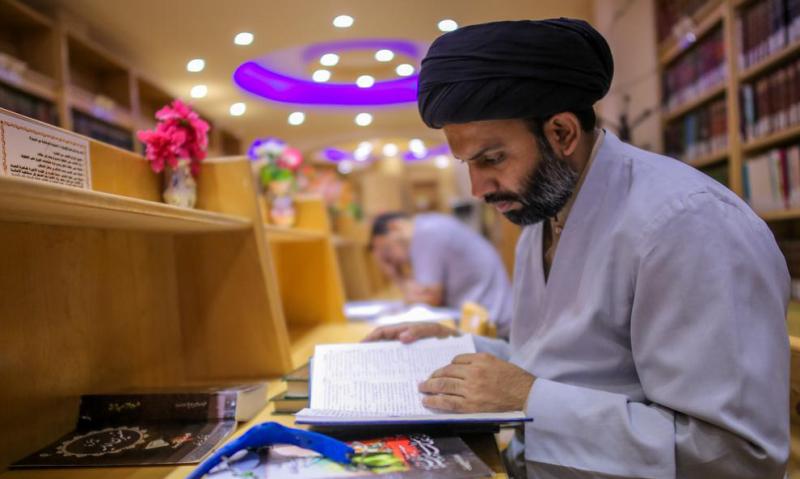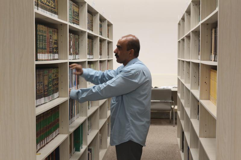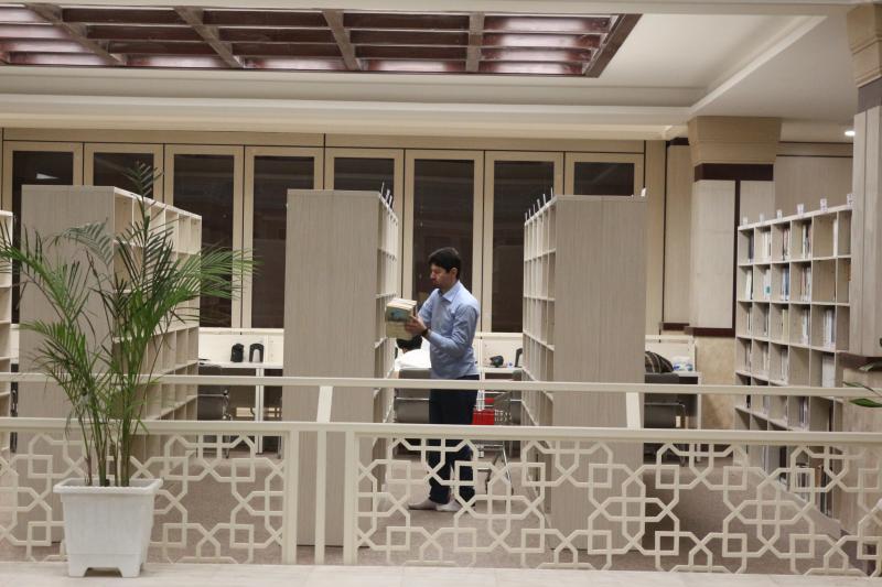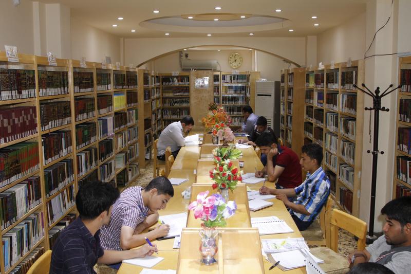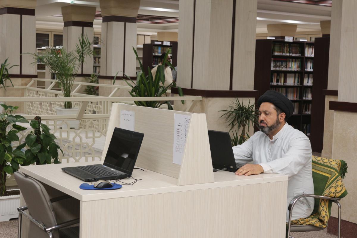 وهي على نحو الرفوف المفتوحة، حيث يكون الكتاب أمام القارئ والباحث مباشرةً ممّا يساعد على سهولة البحث و الاطلاع على الكتب والمصادر الموجودة داخل القاعة - كما أن كتبها رُتِّبَت حسب التصنيف الموضوعي - كالتفسير والمباحث القرآنية، والحديث الشريف، والرجال والتراجم وغيرها من موضوعات المعرفة، علماً إنّ معظم كتب هذه القاعة هي باللغة العربية كما تشتمل على مجموعة من الكتب بالّلغات الأُخرى من قبيل اللغة الفارسية والاردو والانجليزية وغيرها، ويقدر عدد الكتب لكلا القاعتين (قاعة الرجال وقاعة النساء) في الوقت الحاضر (عام 1439 هـ 2018 م) بـ اكثر من (200 ألف) كتاب .